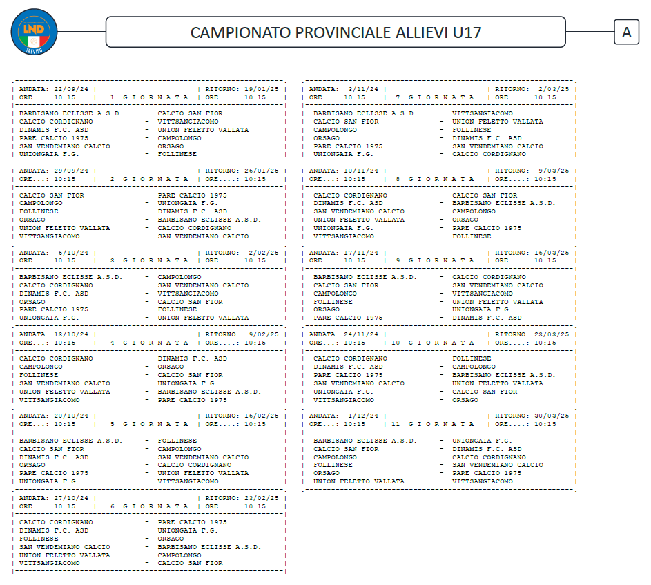 2024/25 - CALENDARIO LND CAMPIONATO U17