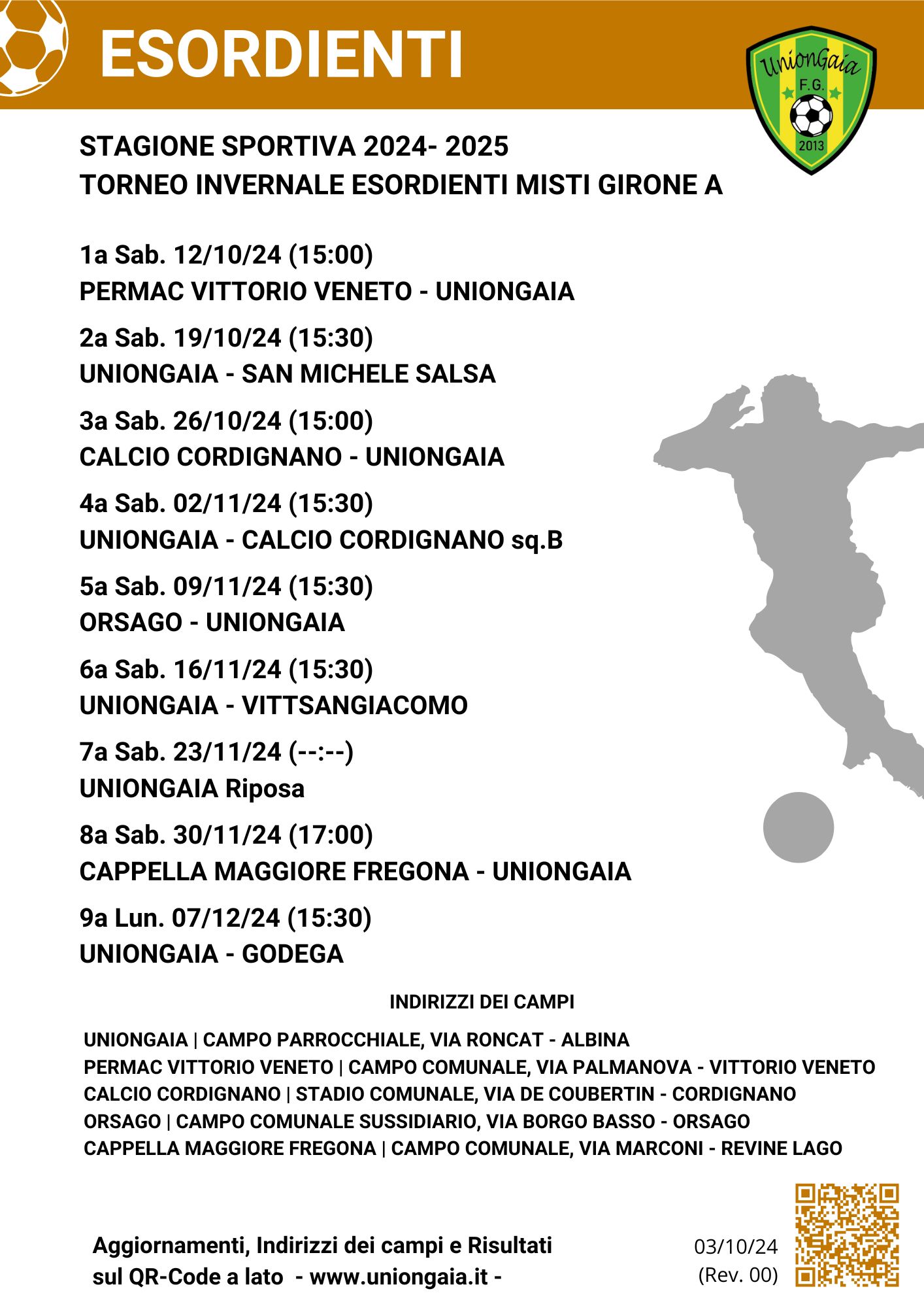 2024-25 CALENDARIO UNIONGAIA TORNEO INVERNALE GIRONE A