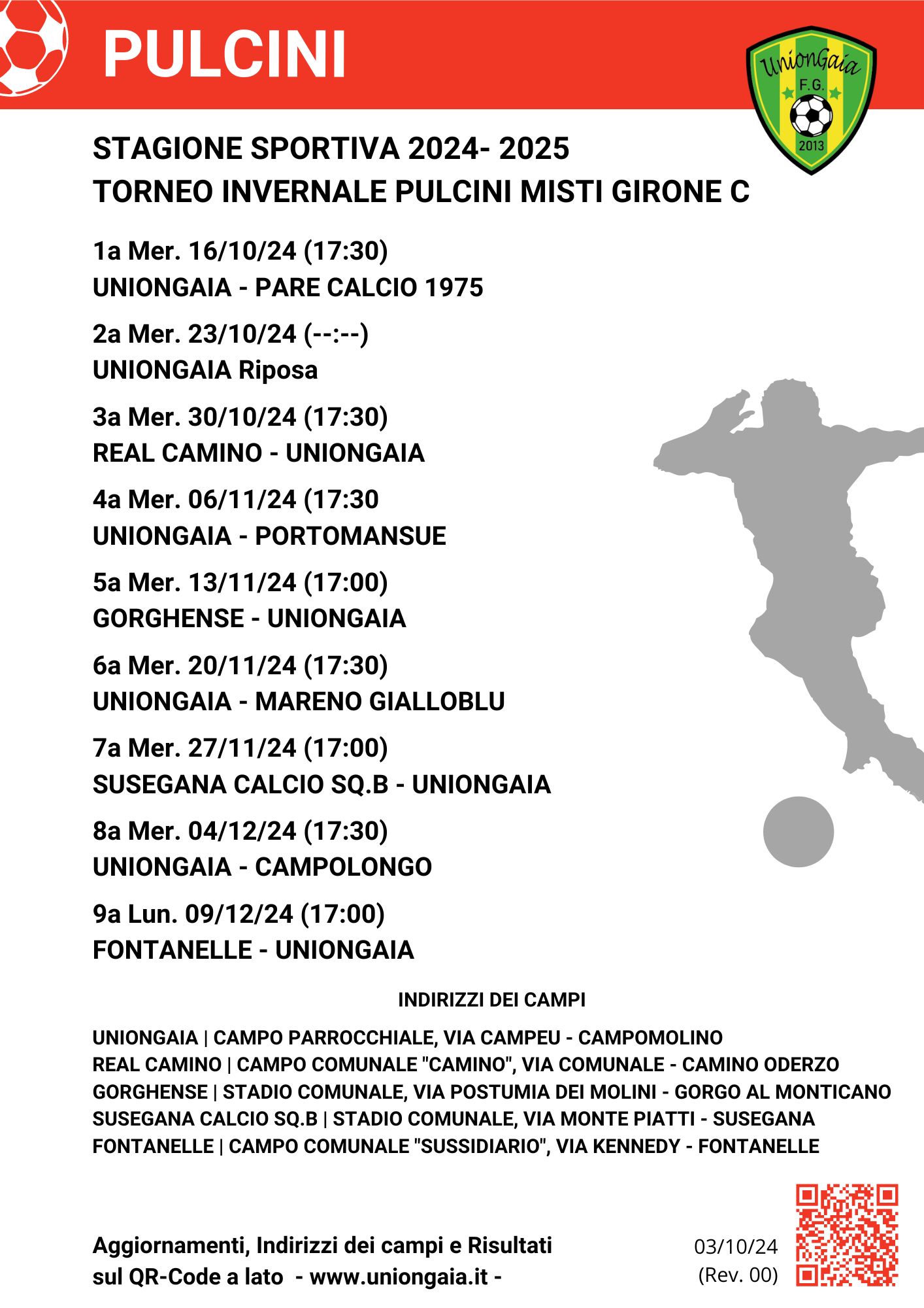 2024-25 CALENDARIO UNIONGAIA TORNEO INVERNALE GIRONE C
