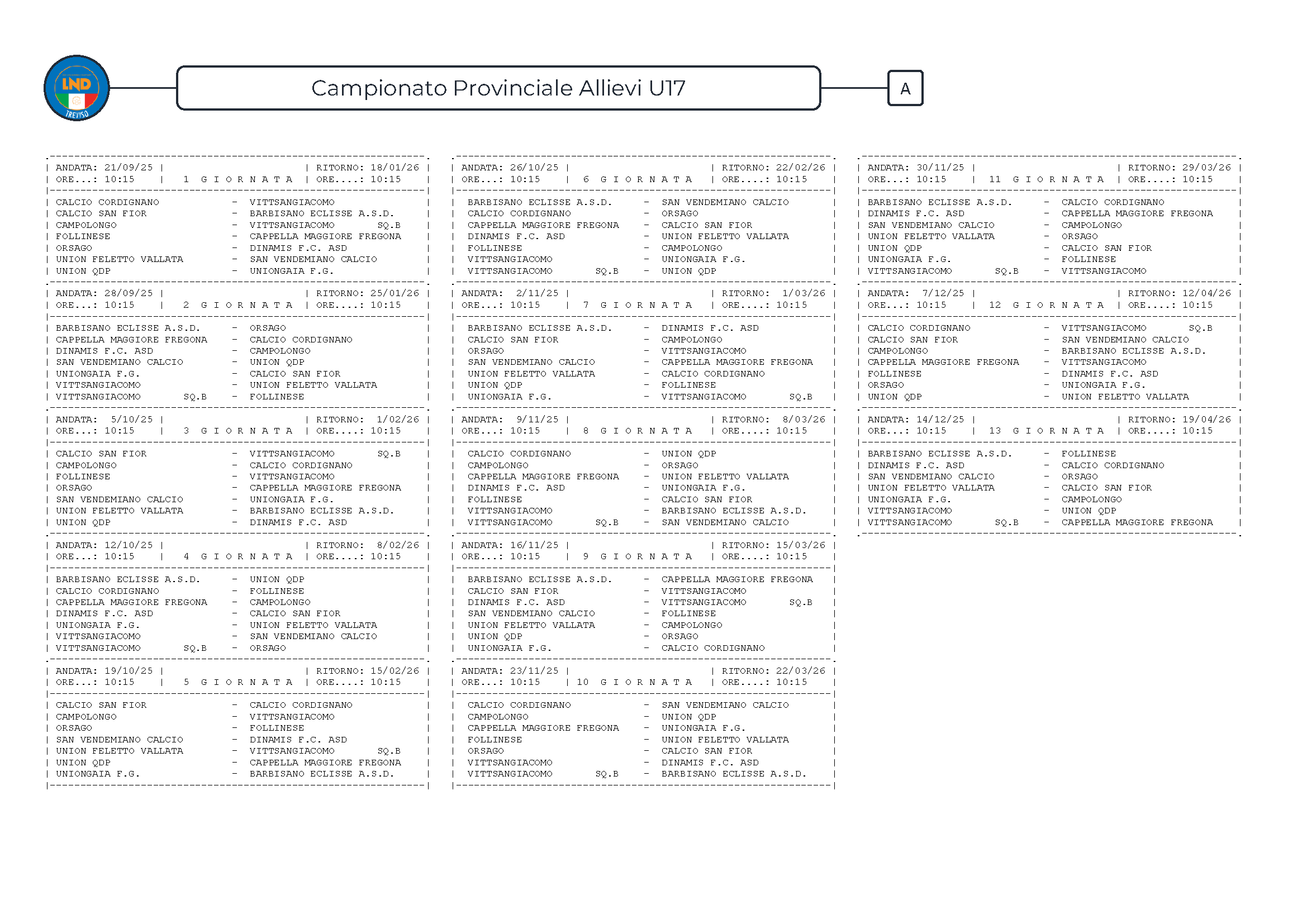 2025-26 Campionato Provinciale Allievi U17 Gir.A