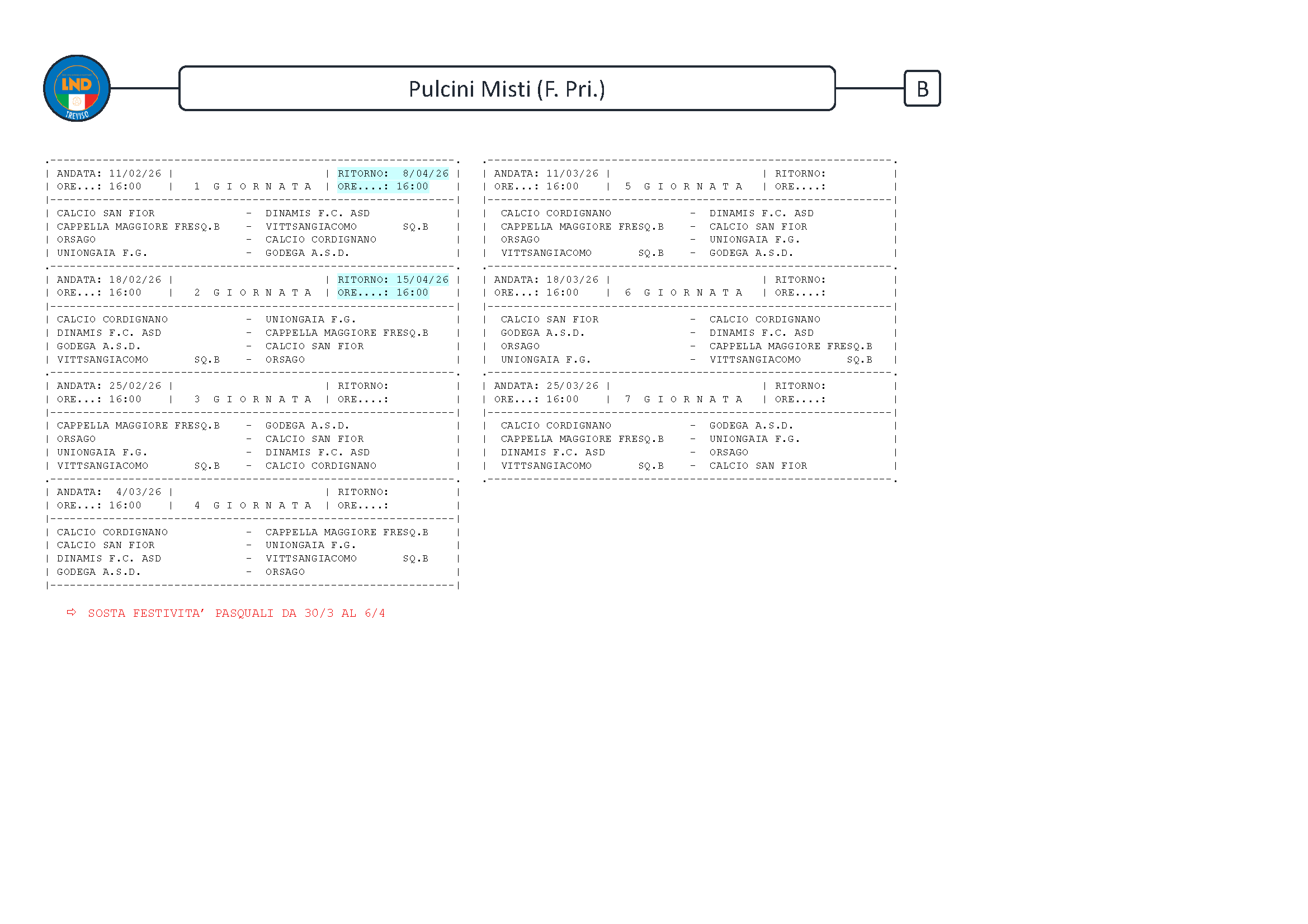 6a Mer 18/03/26 (17:45) UNIONGAIA - VITTSANGIACOMO SQ.B