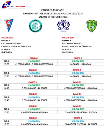 Sabato 16 Dicembre dalle ore 15.00 a Cordignano si terrà il Torneo di Natale per la categoria Pulcini 2013 e 2014