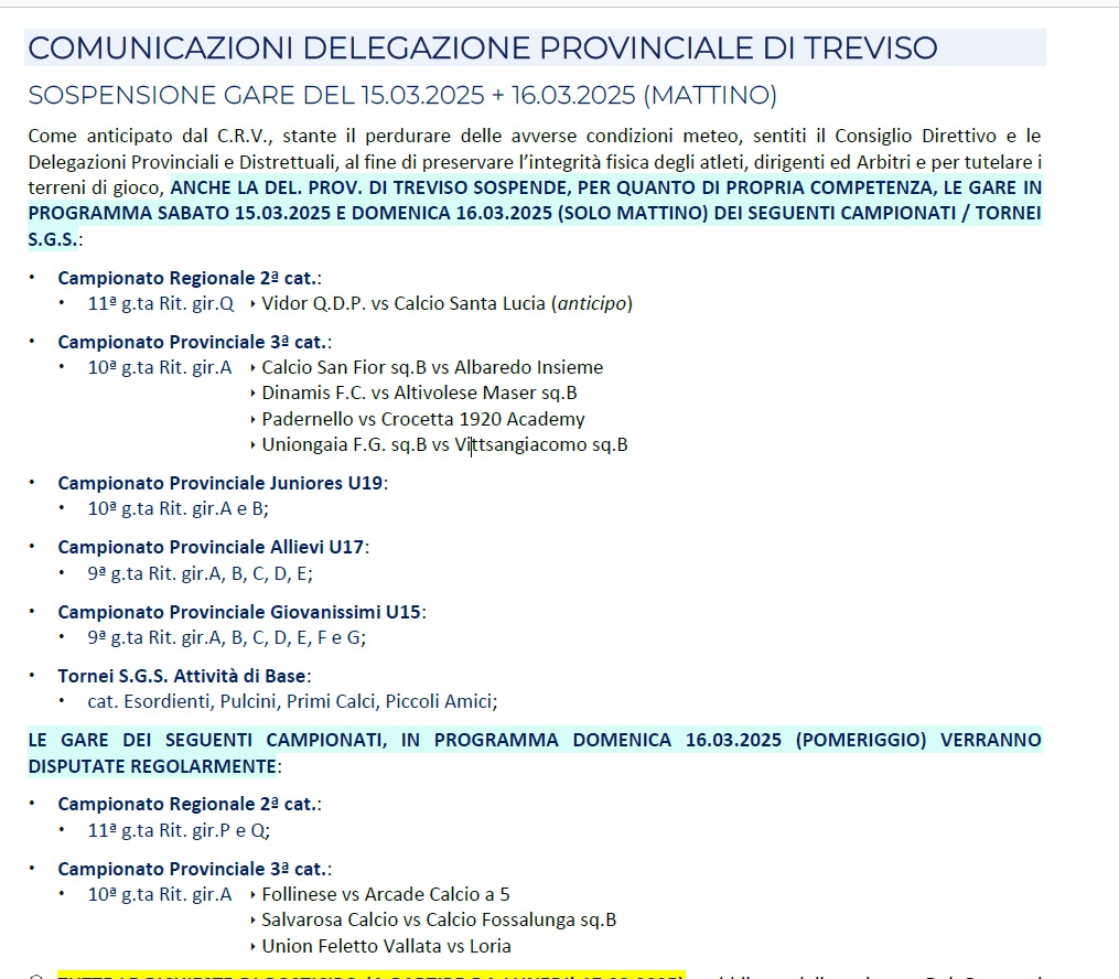 RECUPERI UFFICIALI GARE 15-16 MARZO 2025
